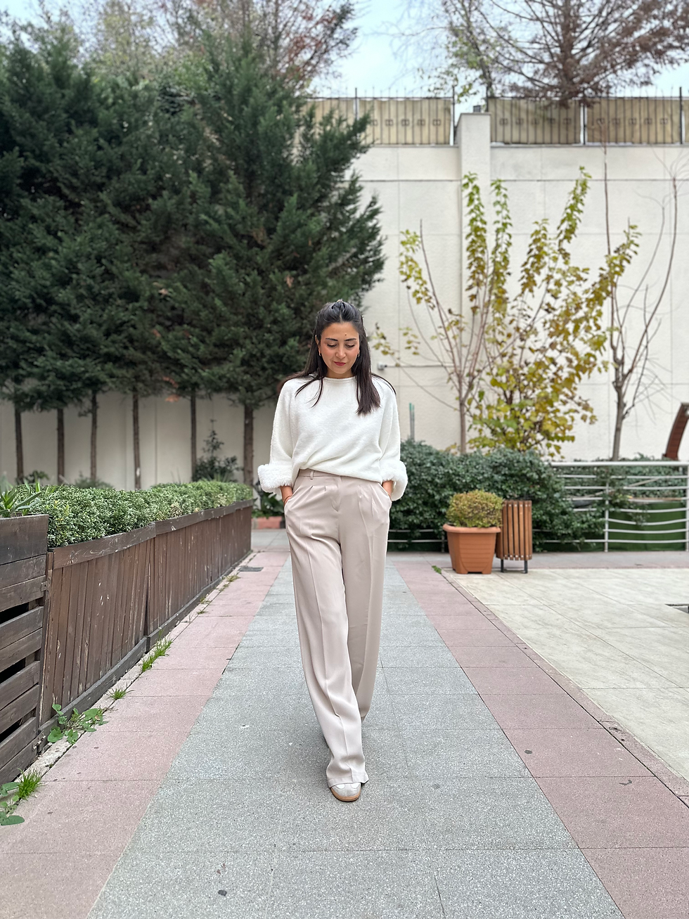 Arkası Lastikli Pileli Palazzo Pantolon